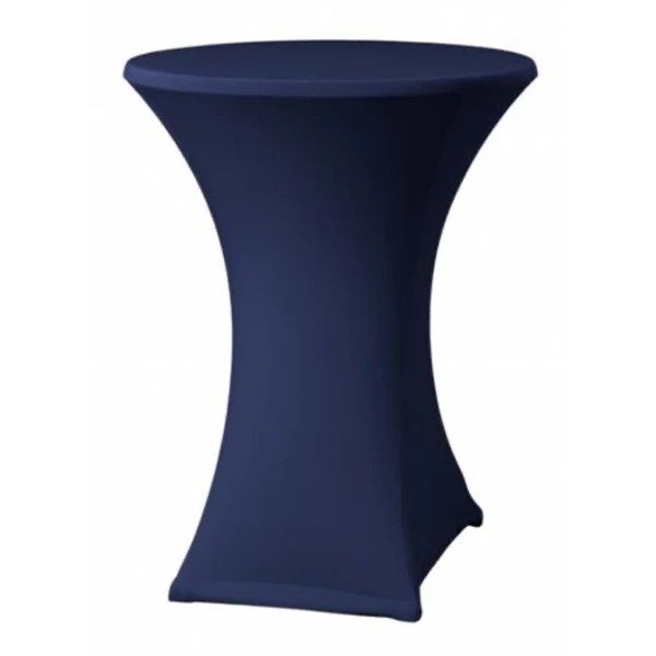 Statafel rond met tafelblad diameter van 85 cm, met moderne statafelrok in stretch-materiaal in de kleur: blauw.